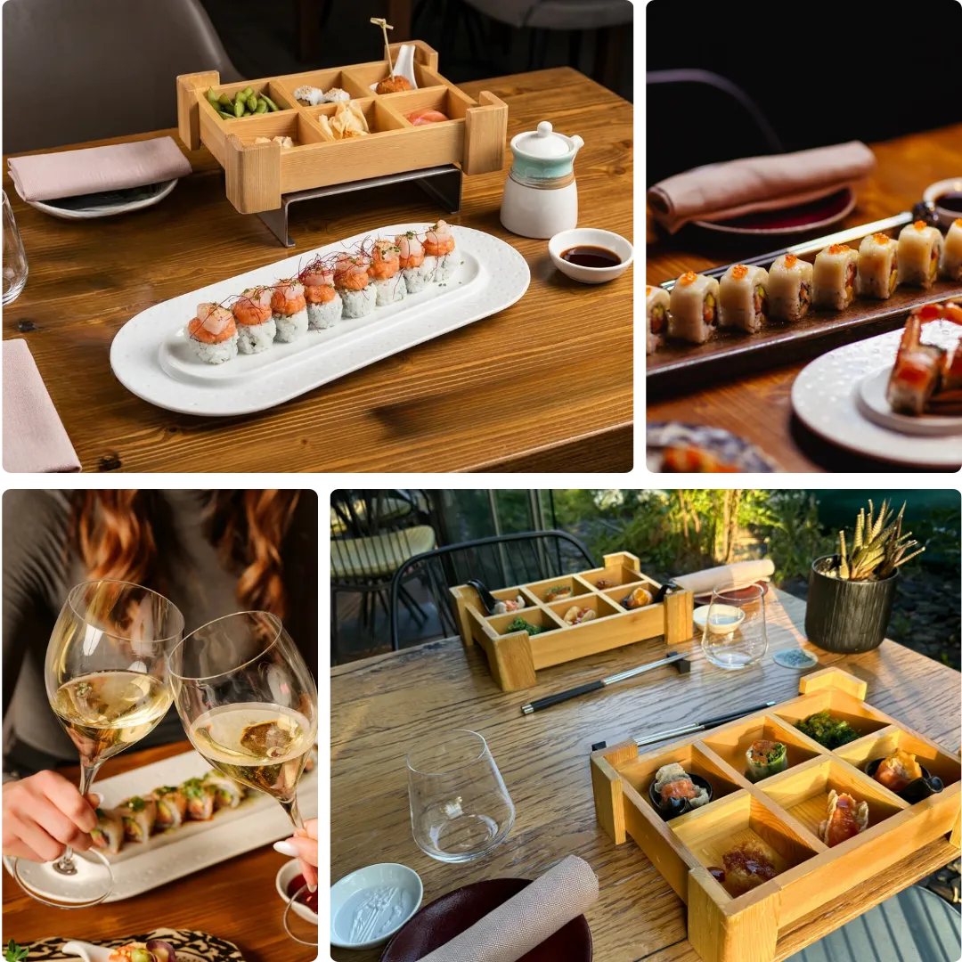 Chef's Starter Box (6 pezzi) + 2 Portate principali a scelta (dal banco sushi o dalla cucina) + acqua e coperto inclusi.